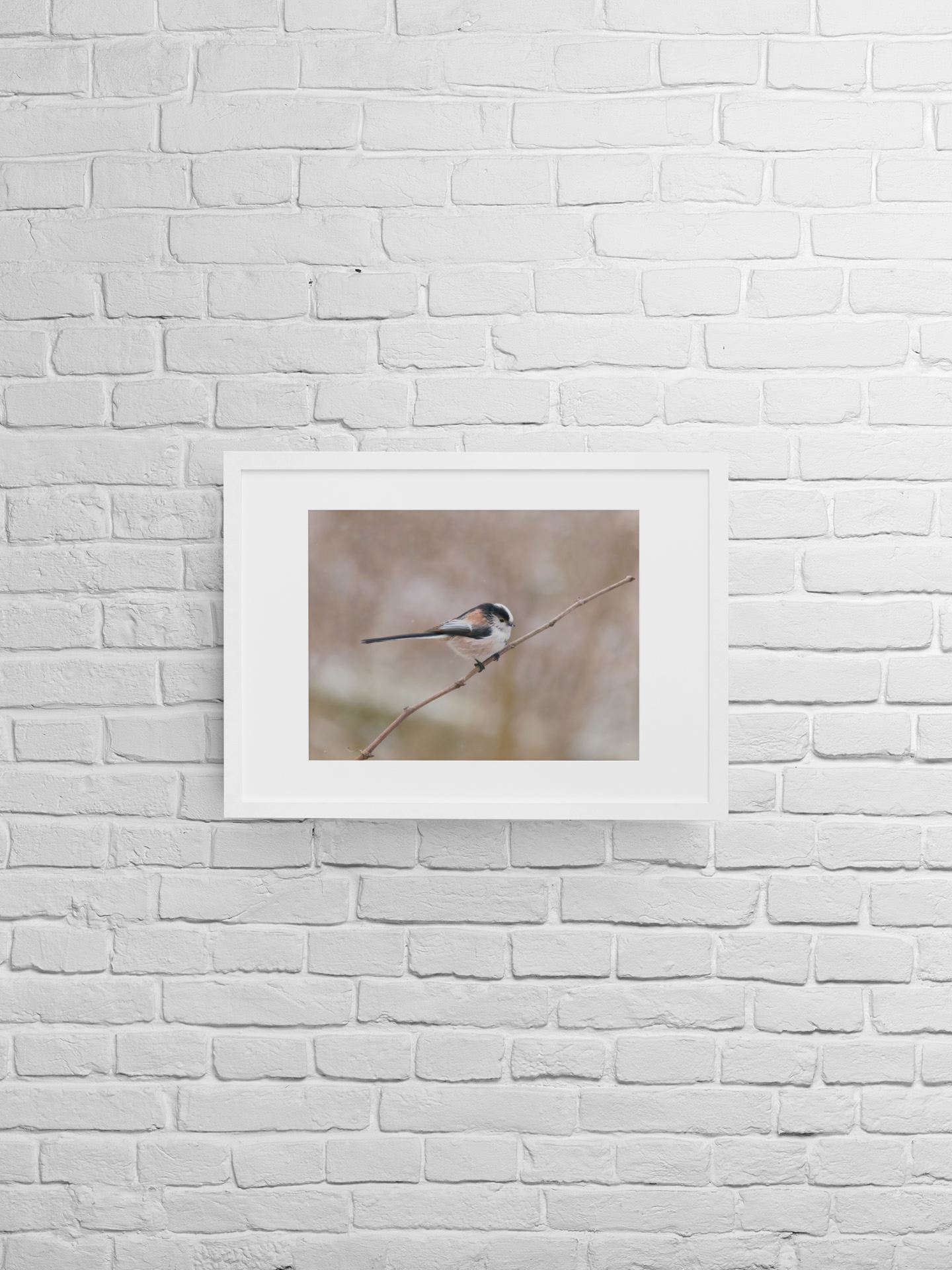 A long-tailed tit perched on a thin, slightly curved branch. These birds are quite rare in our forest. But it's always a delight, when they appear. If you are really lucky, a whole flock of them appear. But that's even more rare.